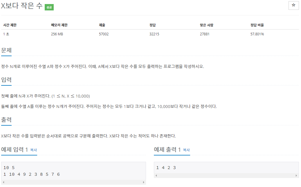 import sys n, x = map(int,sys.stdin.readline().split()) l = list(map(int,sys.stdin.readline().split())) for i in range(n) : if(l[i] < x) : print(l[i],"",end = '',flush=True)===