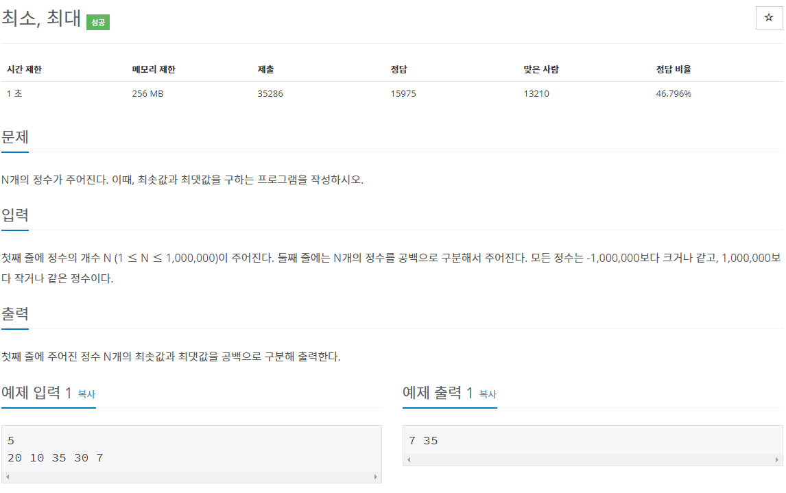 10818_Python // 최소,최대IT_Baekjoon 단계별로 풀어보기/1차원 배열 2020. 1. 8. 00:18