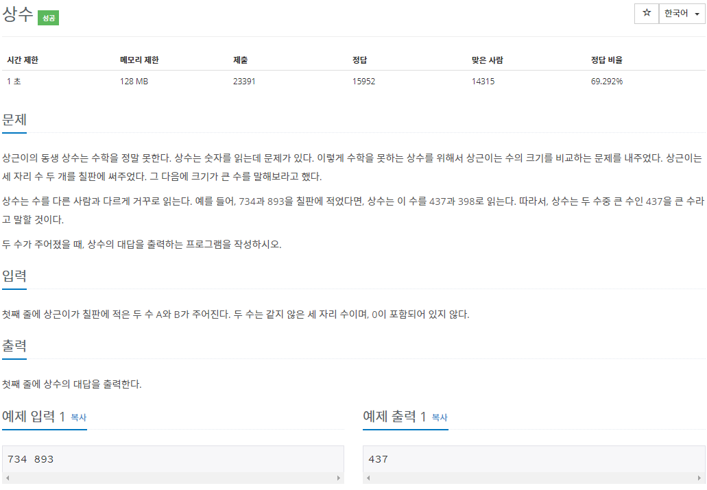 2908_Python // 상수IT_Baekjoon 단계별로 풀어보기/문자열 2020. 1. 14. 00:21